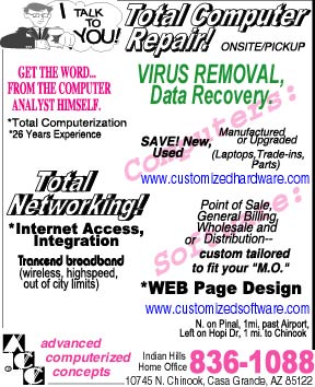 Total computer repair and service, virus removal specialists plus data recovery. Serving Casa Grande, AZ 85222 for over 20 yrs. WE TALK TO YOU at Casa Grande Computer Repair.